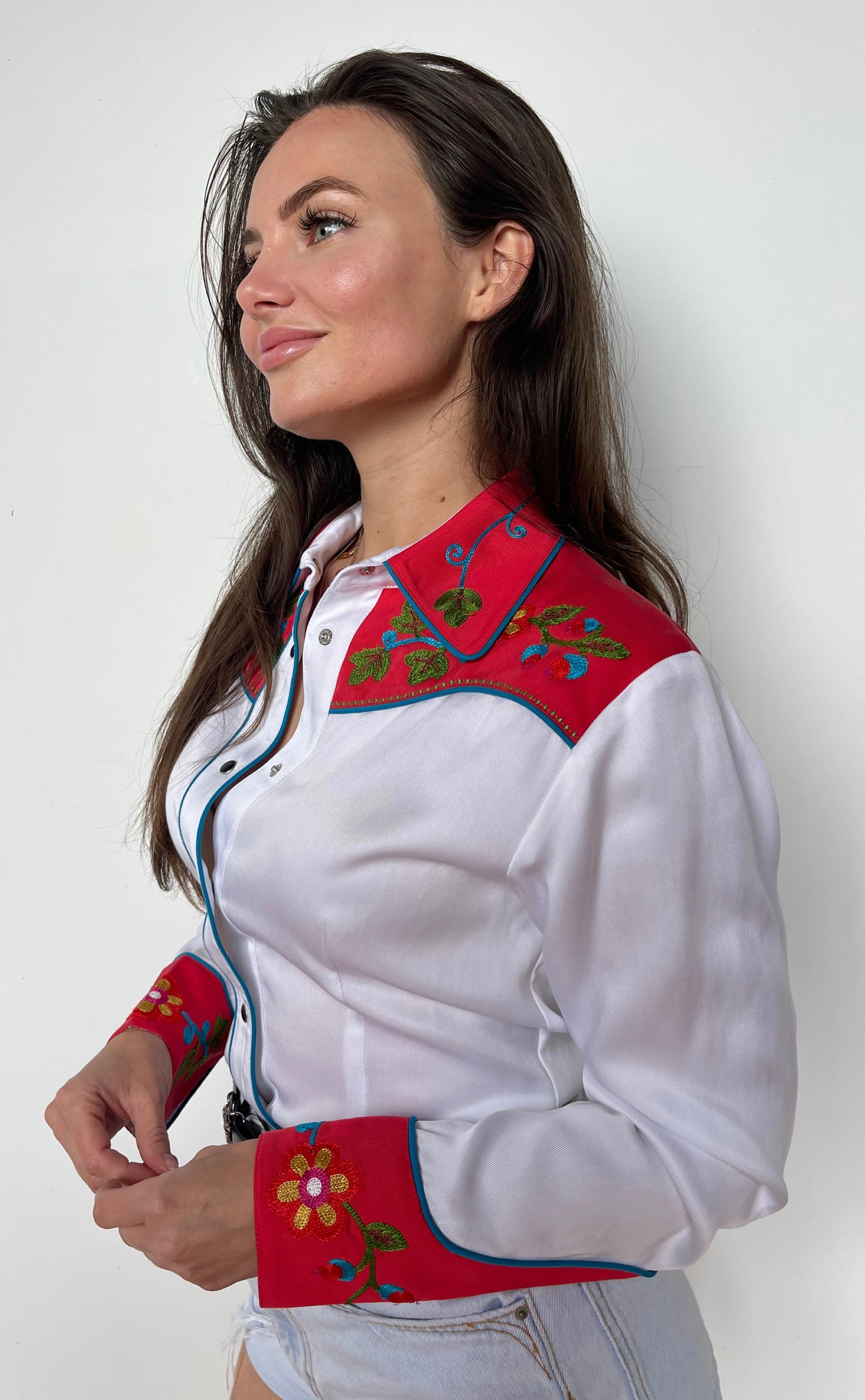 ソルトレイクは、フロントバックと袖口にクラシックな花柄をあしらった美しいスタイルのヨークが特徴の新しいチェーンステッチデザインです。シャツはテンセル100%のプレミアムシルク刺繍糸で作られています。