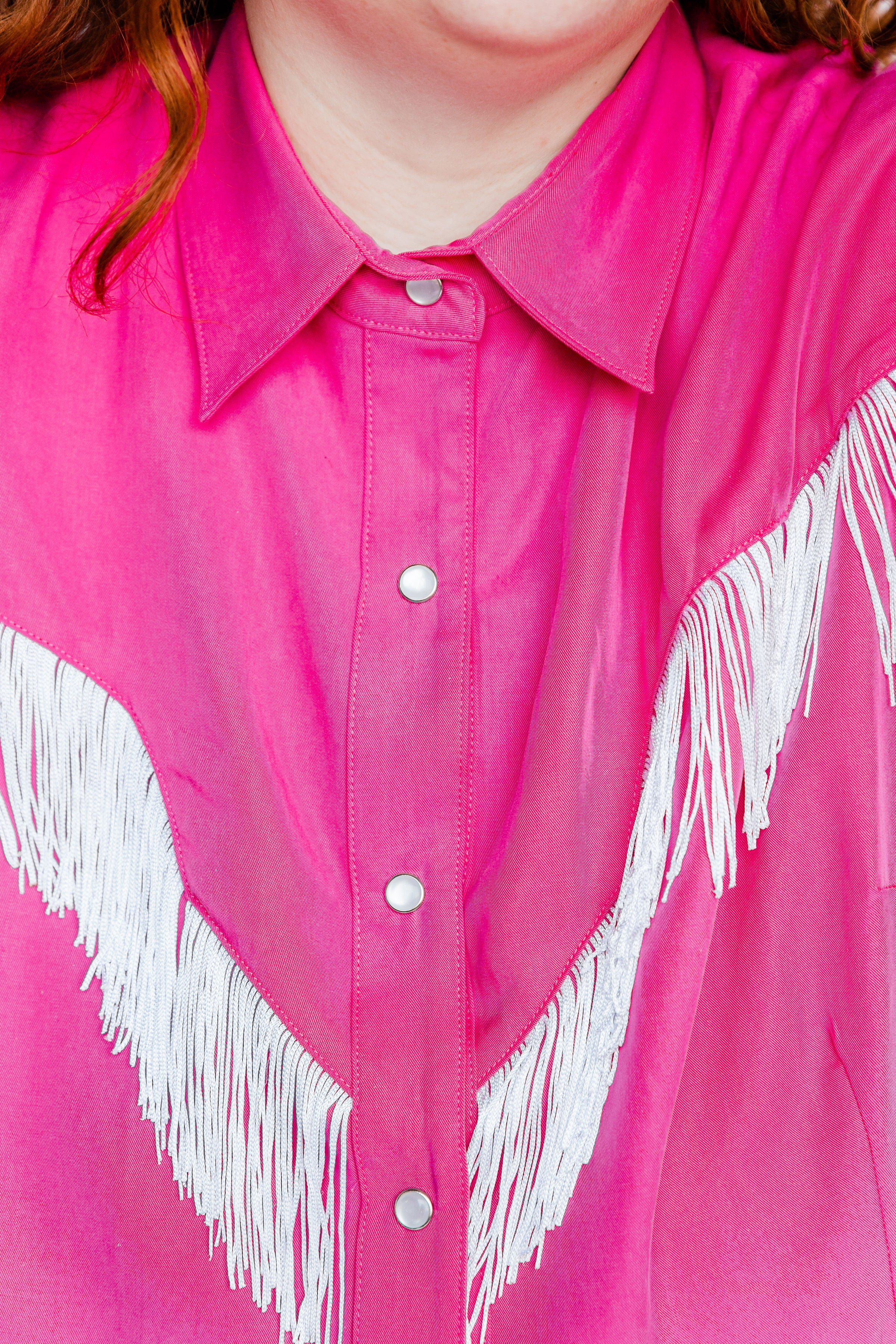 The Tulsa top features our classic western design with fringe on the front and back yokes. Our Tulsa is constructed of 100% premium Tencel in two color ways, black & white and pink & white. Designed to coordinate with the Cheyenne skirt and the Marfa shorts in collaboration with Jukebox Mama. Stay cool this summer in the sleeveless Tulsa shirt. Now available in extended sizing, please consult the measurements chart below for a good fit.