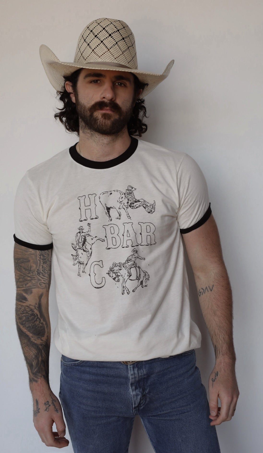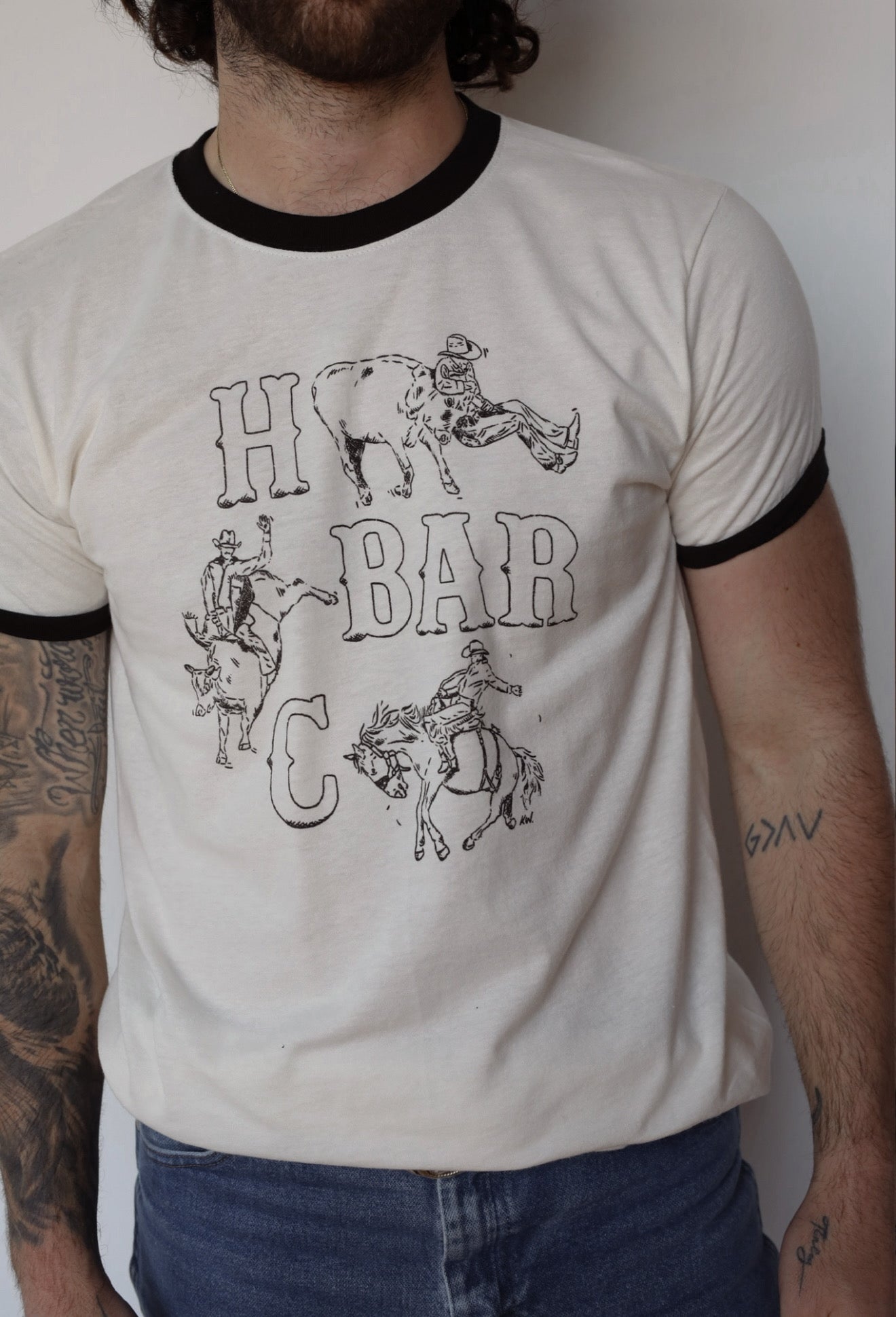 In this exclusive collaboration between HBarC and Kate Snake Art, our legendary Western tradition meets a modern edge. The Bull riding ringer tee features Kate’s signature hand-drawn style. Printed on premium, garment-dyed cotton for a soft, vintage feel that looks as timeless as it wears.