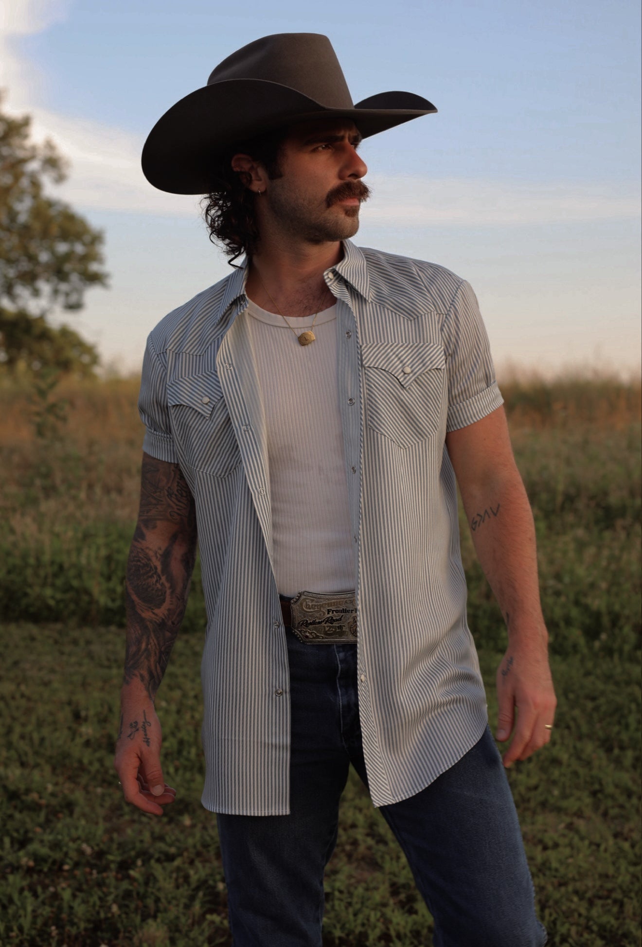 The Newport has single point front pockets, short sleeves, subtle yoke and pearl snaps.