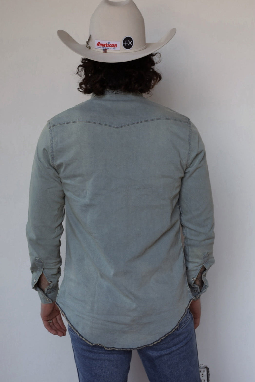 면 100% 데님 위브 웨스턴 셔츠. 이 새로운 스타일의 데님 셔츠는 모든 디테일에 전문적으로 맞춤 제작되었으며 1897년부터 H Bar C가 지켜온 품질을 보여줍니다.