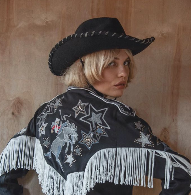 The Pinnacle of cowgirl flair; embrace the star design, carefully chain stitched into the stylish Las Vegas shirt. With a western theme embroidered on our signature Tencel fabric, The Las Vegas will definitely take your look to the next level. The silver/white embroidery glisten with every step you take, as the tassel sways when you do. With a flattering visual taper, The Las Vegas is sure to make you feel like the main character in your own story to tell.