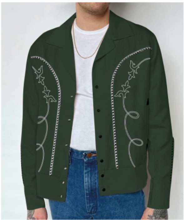 Together, we created a piece worthy of the occasion. Cut in Tecovas Green, the Anniversary Jacket features our signature tailoring, black pearl snaps, and exclusive collaboration embroidery inspired by the stitchwork on Tecovas’ Birthday Boot X.